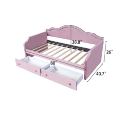 Twin Size Upholstered Daybed With LED Lights And 2 Drawers - Pink