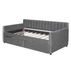 Twin Size Upholstered Daybed & Drawers, Slat Support - Gray