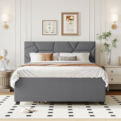 Full Size Upholstered Platform Bed With Brick Pattern Headboard, With Twin Size Trundle And 2 Drawers - Gray