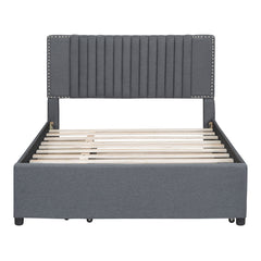 Full Size Upholstered Platform Bed With 2 Drawers And 1 Twin Size Trundle, Classic Headboard Design - Gray