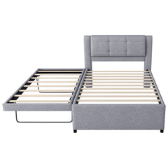 Full Size Upholstery Platform Bed With Trundle,Trundle Can Be Flat Or Erected - Gray