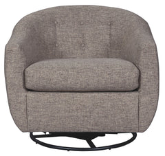 Take a turn for the better with this upscale swivel glider accent chair. Upholstered in a richly woven taupe fabric, this contemporary beauty with tufted barrel back provides a smooth 360-degree swivel that’s such a nice twist.