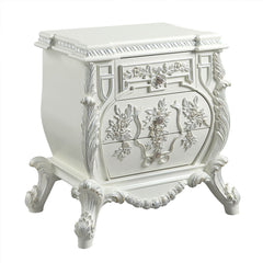 Luxurious style, sophisticated charm, and lustrous finishes are all included in the Vanaheim Bedroom Collection. Extravagant scroll floral design with gold trim accent creates classic appeal and timeless silhouettes. Button tufted headboard and footboard add texture and dimension to the panel bed. The matching casegoods in an antique white finish echo the overall design of the collection.'With so many irreplaceable characters, the Vanaheim Bedroom Collection will work beautifully in a variety of other spaces.