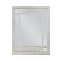 - Wooden Frame, Raised Geometric Trim, Beveled-Mirror Inlay