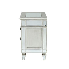 The Varian nightstand provides a commanding presence in any room. Add a dash of glam to your bedroom with this Varian nightstand, it features four tapered legs and 2 storage drawers with crystal-like knobs. This gorgeous nightstand is accented with raised geometric patterns and mirror finish. This fashionable nightstand will fuse with the surrounding Decor, transforming a room from ordinary into something interesting and sophisticated.