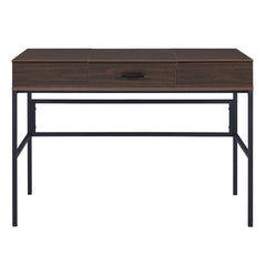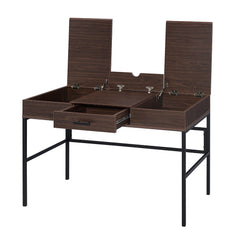 The beautiful contrast between warm wooden tone with cold metal elements delivers a bold industrial design. The writing desk has a wooden top for natural texture, softening the hard look of dark metal frame. The unique hinged top flips up to reveal two spacious interior storage compartments, which help you hide odds and ends to maintain a clean workspace. There is also a storage drawer for storing your stationery, as well as providing easy access and built-in USB ports and built-In outlets keep your devices fully charged.