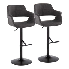 Vintage Flair - Mid-Century Modern Adjustable Barstool With Straight T Footrest (Set of 2) - Black / Charcoal