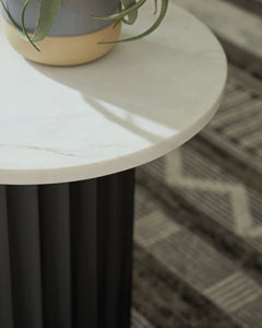 On trend and totally captivating, this accent table is proof positive that big style can come in small packages. Your curated approach to interior design is reflected in its contrast of white marble and black metal. Fluted details on the base add an extra dash of contemporary flair. Whether this table is next to a chair or on its own as an accent piece, it's utterly cool.