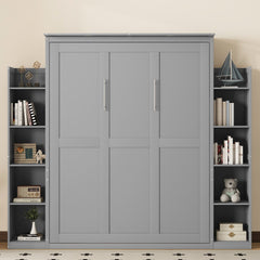 Queen Size Murphy Wall Bed With Shelves And LED Lights - Gray