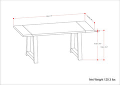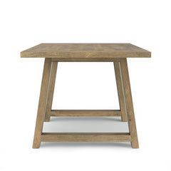 - The thick, rectangular tabletop is made with sustainably sourced solid mango wood in a Grey Wash finish and perpendicular panels on the short sides for visual contrast.