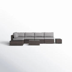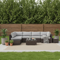Wicker 6 Person Sectional Seating Group With Plush Cushions - Brown