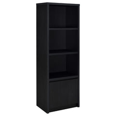 This contemporary media tower combines functionality and modern design in a sleek black finish. Built from durable engineered wood with a scratch-resistant laminate veneer, it features three open shelves for organizing media devices, books, or decor. A bottom cabinet offers concealed storage to keep clutter at bay. Its tall, clean-lined silhouette provides vertical storage, perfect for maximizing space in living rooms, home offices, or entertainment areas.