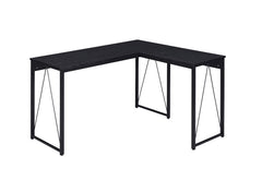 Add a mixed elelments appeal to your office with this rustic industrial design. The Zetri Desk boasts a L-shaped top with a open sled base for a spacious workspace. The metal frame keeps silhouettes neat,with reverse "V" shaped support for extra stability and style ,while wooden table top and apron soften the whole product with a rustic wood finish. Use the Collection desk to creat a efficient and stylish workplace for your office