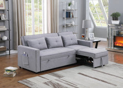 Zoey - Linen Convertible Sleeper Sofa With Side Pocket - Light Gray