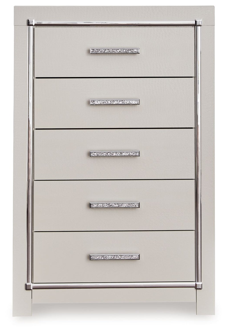 Bright, bold luxury. This chest of drawers dazzles with its attention to detail. Your love of glamorous style is reflected in its all-over faux gator in a metallic finish, exquisitely paired with faceted chrome-tone details. Complete with smooth-gliding storage drawers, it inspires you to live luxuriously every day—whether dressing up to go out or dressing down to stay in.